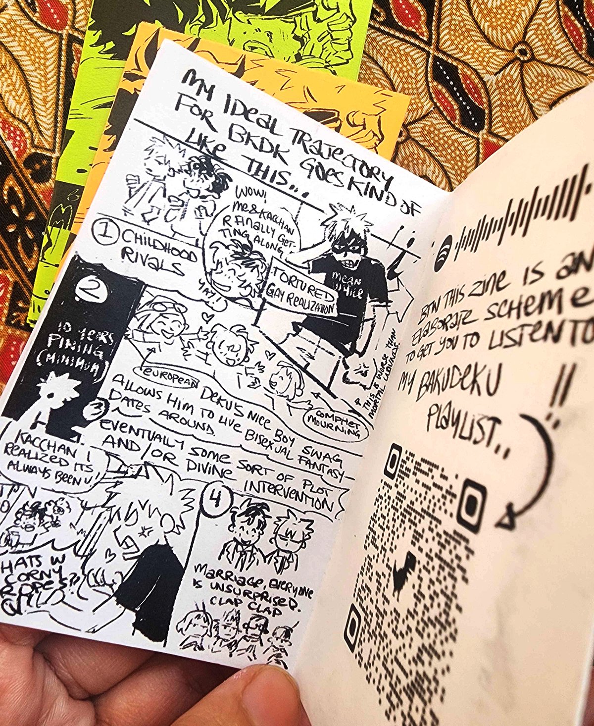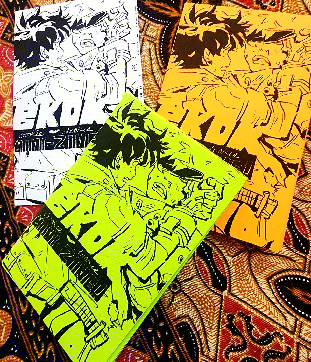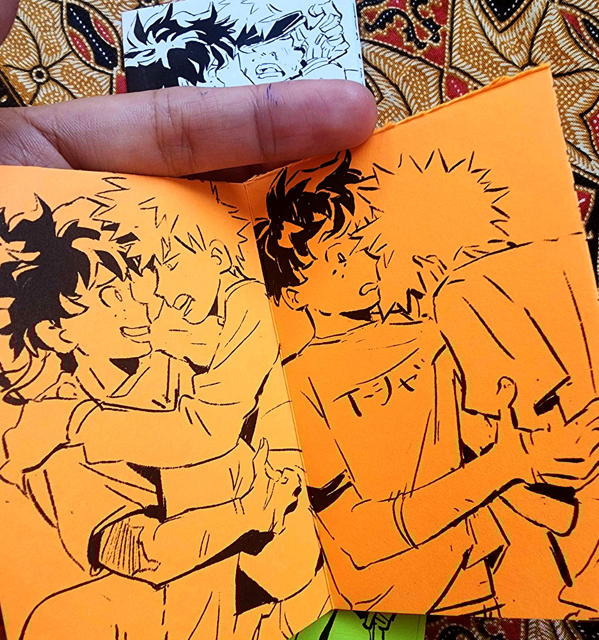 Folded 6pg minizine featuring Bakugo and Deku from My Hero Academia.