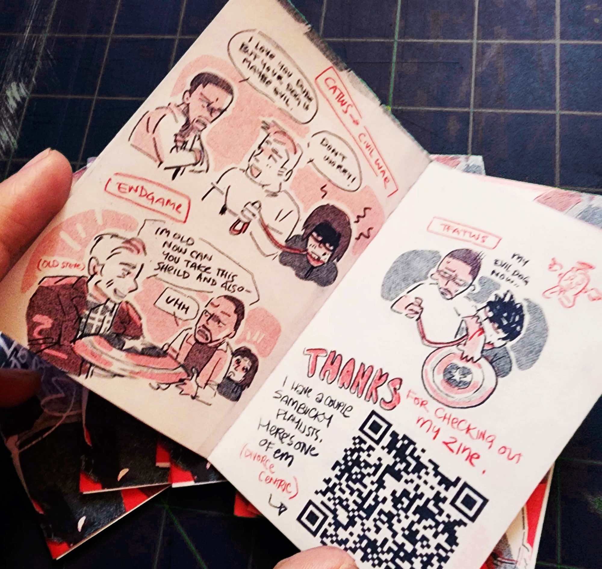 Folded 6 pg minizine featuring Sam Wilson and Bucky Barnes from the MCU.